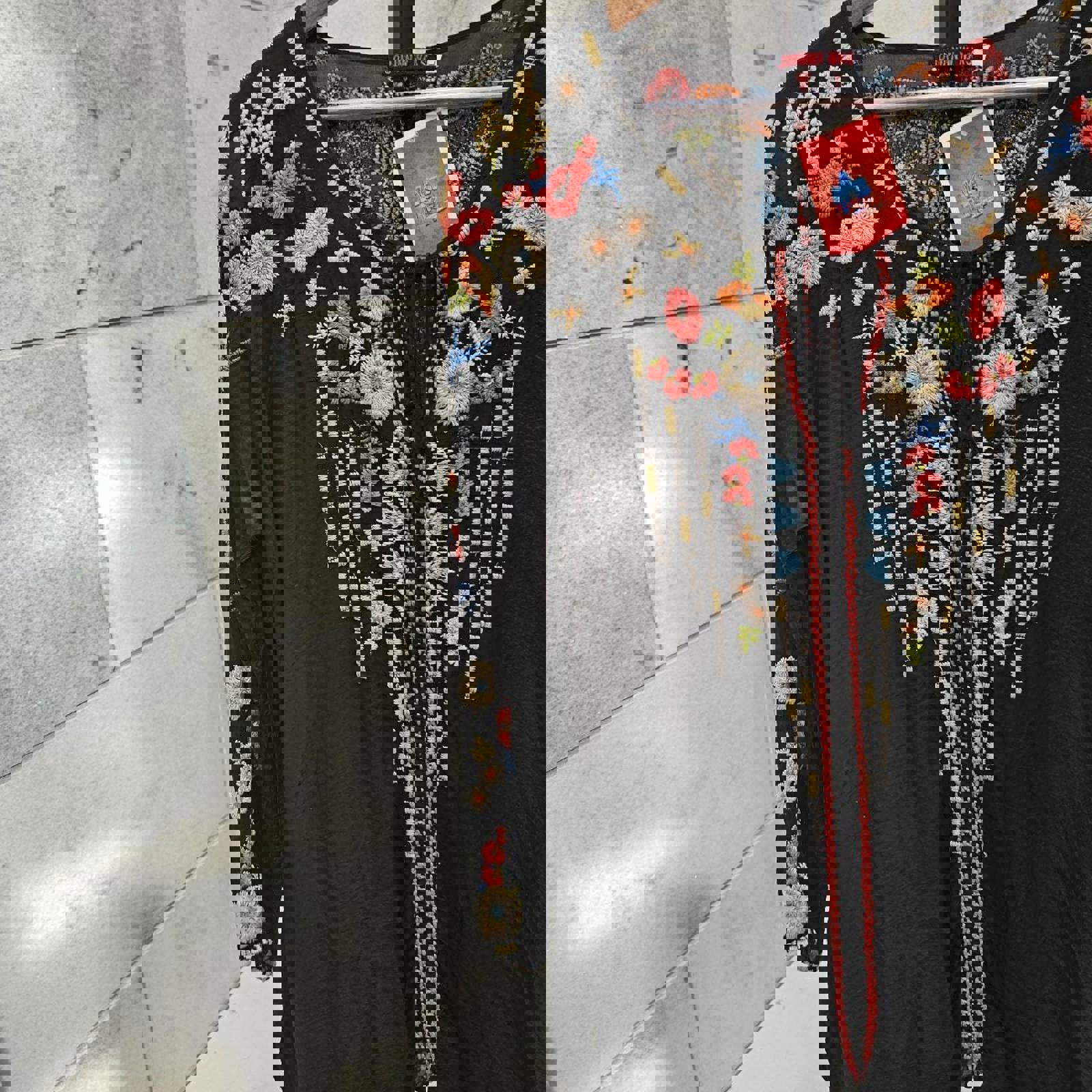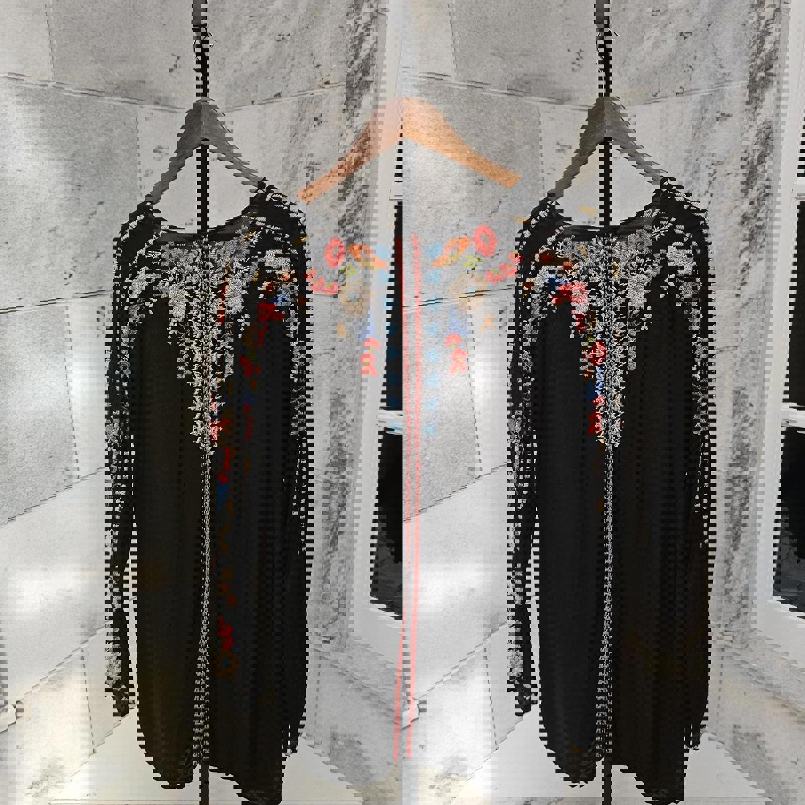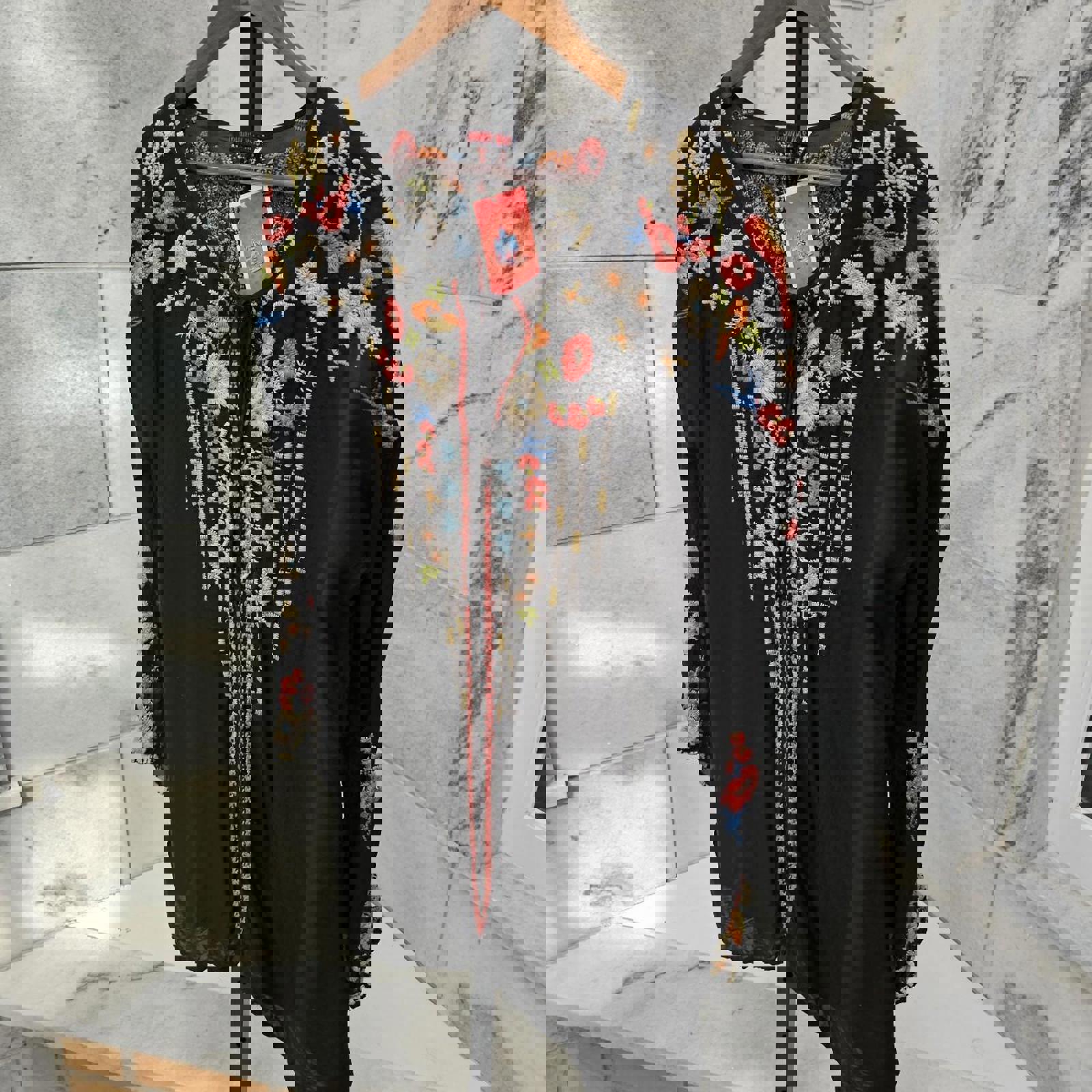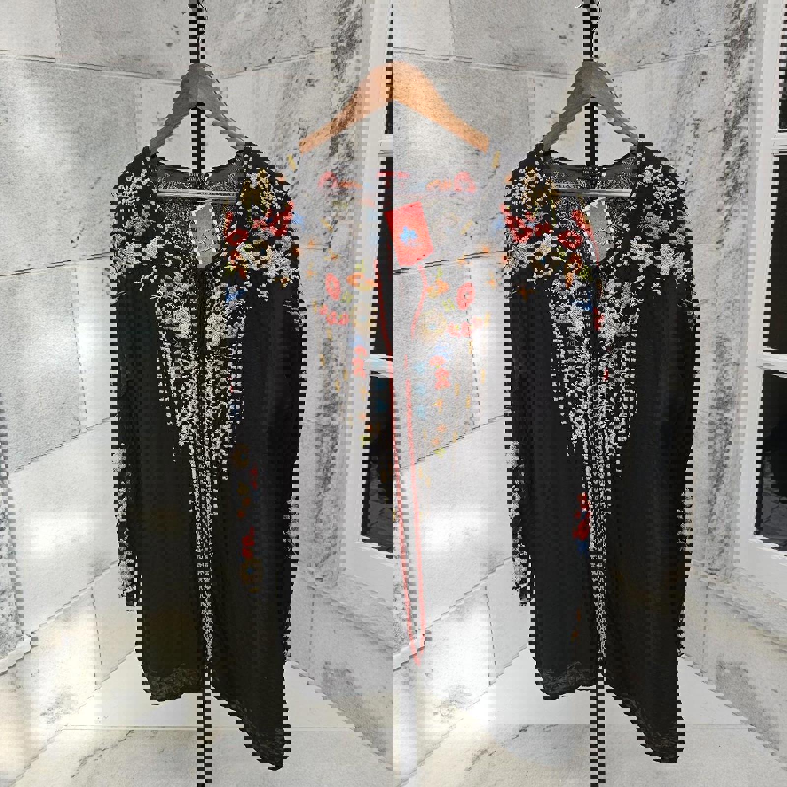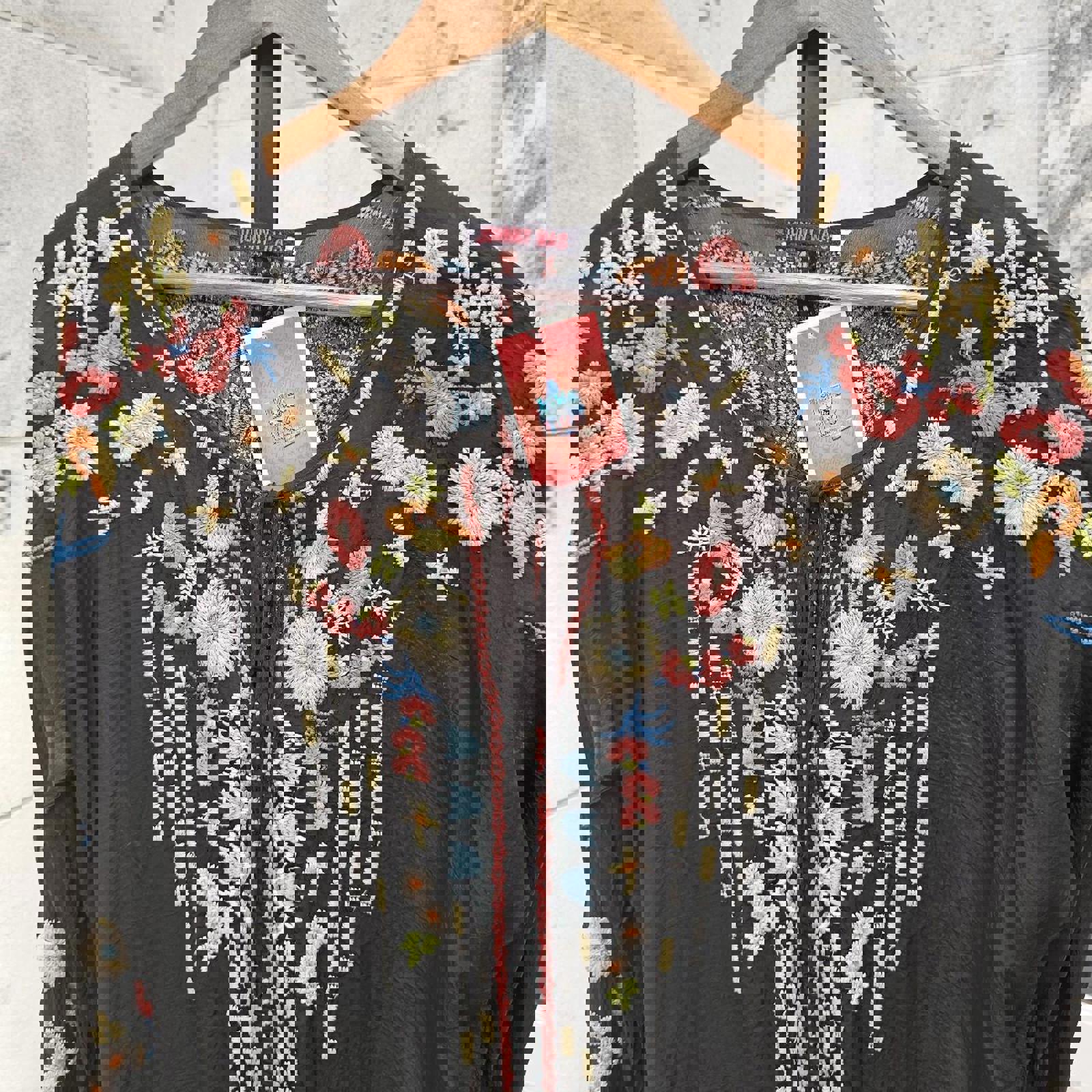 Johnny Was Black embroidered floral long sleeve blouse #floralblouse preloved womens size large $88 plus shipping Johnny Was Large Emily Embroidered Henley V Neck Long Sleeve Top Shirt Tunic