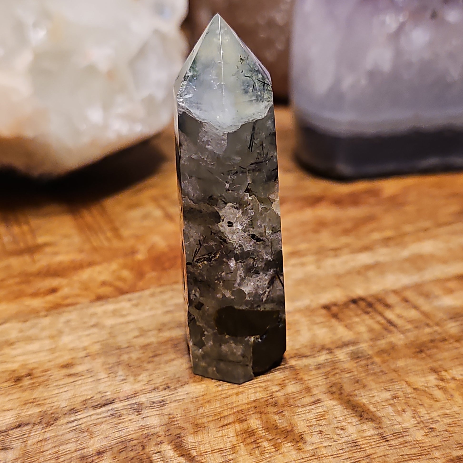Prehnite is considered a stone of unconditional love and the crystal to heal the healer. It enhances precognition and inner knowing. Enables you always to be prepared. Prehnite calms the environment and brings peace and protection. It teaches how to be in harmony with nature and the elemental forces. Helpful for “decluttering” – letting go of possessions you no longer need, aiding those who hoard possessions, or love, because of an inner lack. Prehnite alleviates nightmares, phobias and deep fears, uncovering and healing the dis-ease that creates them. It is a stone for dreaming and remembering. Beneficial for hyperactive children and the causes that underlie the condition.